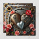 Joli modèle de photo personnalisé pour la Saint-Valentin dans un style Steampunk gothique. Jolies roses roses et cœurs en argent, or et cuivre. Le dos comporte trois espaces pour des photos en forme de cœur. Vous pouvez également modifier le texte dans la zone de personnalisation.