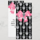 Nœud rose élégant avec centre en diamant rose et noir, modèle de programme de mariage, de fête et d'événement. Ce modèle d'invitation chic rose et noir convient parfaitement pour une invitation d'anniversaire, une invitation de mariage, une invitation de baby shower rose et noir, une fête de fiançailles, une invitation de bat-mitzvah et toute autre occasion spéciale. Ajoutez vos détails au recto et au verso en choisissant simplement le bouton "Personnalisez-le !" pour commencer à ajouter les détails de votre événement, le style de police, la taille et la couleur de la police, ainsi que le libellé. Veuillez noter que tous les modèles d'invitation que vous trouverez sur Zazzle sont des graphiques imprimés sur du papier plat sans véritables bijoux, nœuds, reliefs, gaufrages ou pièces ajoutées.