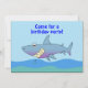 Le devant de ces invitations a un mignon requin caricaturiste. C'est bleu et violet et il grince avec de grandes dents et se noie. Il dit, "Venez pour une fête d'anniversaire."