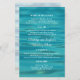 Menu mariage économique avec arrière - plan de plage océan. Les ondulations d'eau est l'arrière - plan du texte blanc personnalisé. Les noms de la mariée et du marié sont au centre du journal. Customisez quatre sections avec les informations du menu.