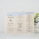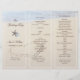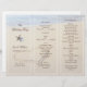 Coeur dans le sable programme de mariage modèle. Plier en tiers pour créer un programme unique et magnifique de mariage à thème de la plage. Customisez facilement à l'aide des lignes de texte modèles fournies. Deux étoiles de mer ont décoré le troisième avant qui a quatre modèles en texte marron. L'eau de l'océan se dévoile en haut sur la plage avec un grand coeur tiré dans le sable de la plage. Cette image sera imprimée SEULEMENT SUR UN CÔTÉ. L'inverse sera clair.