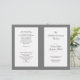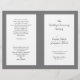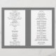Programmes de cérémonie mariage gris foncé et blanc avec zones de modèle texte pour accueillir une cérémonie catholique plus longue. Une police noire et élégante est imprimée sur des panneaux blancs à l'avant et à l'arrière. Plier en deux après réception qui mettra l'écriture et le message de remerciement à l'arrière du programme. Au verso (qui sera le centre des pages du programme) inclure l'ordre de la cérémonie et la section de la fête de mariage pour énumérer toutes les personnes impliquées dans rendre la journée si spéciale. Bien que cet exemple de programme soit mis en place pour un service catholique, utilisez-le pour n'importe quel type de mariage. Ajoutez des espaces pour améliorer la formulation.