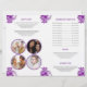 Élégant programme de funérailles florales violettes avec un design serein, parfait pour les services commémoratifs, la célébration des événements de la vie, et l'honneur des proches. Entièrement personnalisable et prêt à imprimer.