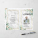 Beau et professionnel modèle du programme funéraire avec fond vert floral, facile à modifier et à imprimer.