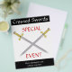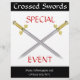 Des épées médiévales à bijoux traversaient le design modèle du prospectus. Deux armes d'épée renaissance croisées avec de l'or et des bijoux sur la poignée pour votre prospectus d'évènement. Totalement personnalisable, police, couleurs arrière - plans et plus tout en ligne.