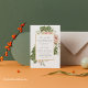 Cette élégante carte d'invitation dispose d'un cadre doré avec un rose aquarelle et branche verdoyante comme arrière - plan modèle. Les mots d'invitation sont écrits en noir sur un arrière - plan blanc. Le nom, la date et le lieu du mariage du couple sont également indiqués en caractères noirs sur un arrière - plan blanc.