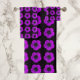 Ensemble de serviettes de bain qui comprend une photo d'une fleur de géranium violet sur un arrière - plan noir et imprimé dans un motif extensible. Un joli design floral ! Commandez les serviettes séparément ou en set.