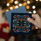 Entrez dans l'esprit des vacances avec cette oeuvre d'art magnifiquement artisanale. Symétrie allie charme festif dans ce design, avec des motifs floraux complexes, des étoiles chatoyantes et le message passionnant "Happy Holidays". Cette oeuvre captivante est idéale pour un décor saisonnier ou comme cadeau spécial, promettant de rayonner de chaleur et de joie dans n'importe quel cadre.