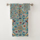 Un simple arrière - plan motif de fleurs, de feuilles et éclaboussant de couleurs vives dans un style d'art populaire mexicain sur un arrière - plan bleu.