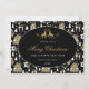 Jolie carte de vacances noire, blanche et dorée avec un motif hivernal de rennes, d'ours polaires, d'écureuils, de maisons et d'arbres. Une belle police de caractères script est utilisée pour ajouter un look plus festif à cette carte de vœux. Personnalisez facilement cette carte de vacances sans photo en ligne.