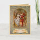 Le thème médiéval délicieux de Noël a une frontière de houx et de gui avec la bannière indiquant le Joyeux Noël. Personnes heureuses dansant et célébrant sous une branche de gui. Customisez avec votre texte de couverture, et salutation d'intérieur, message et fermeture.