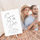 Invités Invitations pour marquer leurs calendriers pour votre mariage avec ces modernes et minimes enregistrer les cartes de date en noir et blanc classique. Caractéristiques de conception simple "enregistrer la date" en script manuscrit décontracté, avec vos noms, date mariage, emplacement, et site Web en dessous. Ajoutez une photo fiançailles préférée orientée portrait à l'arrière.