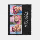Moderne 3 Foto Collage Name Fleece Decke. Einfach den Text ändern und die Fotos durch eigene ersetzen.
