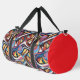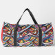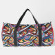 This is a Habatour Creations duffle bag, adorned with an authentic modern abstract geometric digital pattern design.