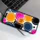 Abstrakte Kreise in Rosa, aquamarin und orange. Ein zentriertes Monogramm auf einem orangefarbenen Quadrat steht zur Verfügung, um das Design anzupassen. Stilvoll und auffällig.