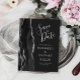 Diese elegante, moderne, Save the Date Postcard besticht durch einen schwarzen Aquarellstreifen in Aquarellfarbe, der mit Imitaten aus silberem Glitzer bestickt ist. Der anpassbare Text ist hellsilbergrau auf einem kohlegrauen Hintergrund. Die Rückseite wiederholt die Informationen zusammen mit einer anpassbaren Rücksendeadresse.