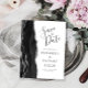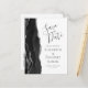 Diese elegante, moderne, Save the Date Postcard besticht durch einen schwarzen Aquarellstreifen in Aquarellfarbe, der mit Imitaten aus silberem Glitzer bestickt ist. Der anpassbare Text ist kohlegrau auf einem weißen Hintergrund. Die Rückseite wiederholt die Informationen zusammen mit einer anpassbaren Rücksendeadresse.