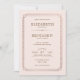 Herrliche Kunst Deko inspiriert Hochzeitseinladung in rot / hellrosa Hintergrund. Mit einem komplizierten Rahmen in Imitaten Rose Goldfolie und eine zeitlose braune Typografie. Diese große Gatsby Hochzeitseinladung wurde von den Flaterkleidern der 1920er Jahre inspiriert. Die Diamanten und Linien auf dieser laden zu den Details auf diese Vintagen Kronen. Die Einladung eignet sich perfekt für eine elegante, formelle Hochzeitsfeier oder eine Schwarze Krawatte. Der Farbhintergrund, die Größe des Schriftartes und der Stil können komplett angepasst werden. Karo aus der Erholung dieser "Vintag Beaded Collection" Hochzeitsstücke.