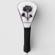 This stylish golf club headcover features a minimalist black-and-floral design on a white background, with soft lavender accents. Personalized with the name "Sandra," it combines elegance and protection for your golf clubs. The sleek black knit sleeve adds a modern touch and ensures a secure fit, making it perfect for golfers who appreciate both aesthetics and functionality.