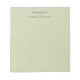 Vom Schreibtisch mit personalisierter Notenkarte. Einzigartige Schrift auf einem grünen Hintergrund, der vorne und hinten die Seiten bedeckt.