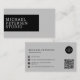 Trendy fette Typografie Firmenname, Logo und Scannen von QR-Code moderne schwarz-graue Visitenkarten für ein stilvolles berufliches Aussehen. Geeignet für Unternehmensberater, Design- oder Foto-Studios, Autoren, Filmemacher, unabhängige Profis, Anwälte oder Anwälte in Rechtsbüros, Brokern.
