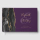 Dieses elegante Gästebuch besticht durch ein schwarzes Aquarell-Design, das mit Imitaten bestickt ist und mit goldenen Glitzer besticht. Der goldfarbene Text lässt sich leicht auf einem lila Hintergrund anpassen, mit den Namen der Braut und des Bräutigams in skurriler Kalligraphie über einen großen Ampersand. Fügen Sie dem Vorder- und Rückgrat einen zusätzlichen Text Ihrer Wahl hinzu.