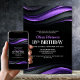 Invite your friends and loved ones to your 18th birthday celebration with this modern black and purple invitation. The customizable text area in this invitation template allows you to include all the necessary details for your special birthday celebration, including the date, time, venue, and RSVP information. A variety of paper types and corner styles are available for your unique invitations, along with the option to download if you prefer a digital format.
