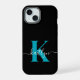 Modern Black Aquamarin Script Monogram iPhone 15 Hülle