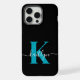 Modern Black Aquamarin Script Monogram iPhone 15 Pro Max Hülle