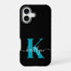 Modern Black Aquamarin Script Monogram iPhone 16 Hülle