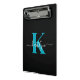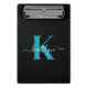 Modern Black Aquamarin Script Monogram Mini Klemmbrett