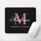Modern Black Blush Pink Monogram Script Mouse Pad Mousepad