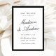 Announce your wedding with this elegant black and white photo save the date card, featuring a classic black border and a refined typographic layout. The couple’s names are displayed in graceful calligraphy script, paired with timeless serif lettering for the date, venue, and location, creating a balanced and sophisticated look. The back showcases your engagement photo framed with a matching black border for a cohesive two-sided design. Ideal for formal weddings, black tie ceremonies, classic and old money style weddings, as well as estate and ballroom venues, this personalized save the date coordinates beautifully with black and white wedding invitation collections and offers a stylish way to share your wedding date.