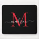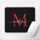 Modern Black Burgundy Maroon Red Monogram Elegant Girly Script Mouse Pad
