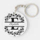 Modern Black Floral Wreath Split Monogram "E" Schlüsselanhänger