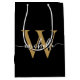 Modern Black Gold Monogram, Initial Stylish Script Mittlere Geschenktüte
