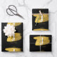 Modern Black & Gold Script Monogram Geschenkpapier Set