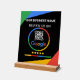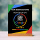 Encourage customer feedback and boost your online presence with this sleek and modern Google Review QR Code sign. Designed with a striking black background and vibrant geometric accents in green, blue, yellow, and red, this sign makes a bold statement. It features a prominent space for 'YOUR BUSINESS NAME' and a clear call to action: 'REVIEW US ON GOOGLE.' The integrated Google logo and a scannable QR code make it incredibly easy for customers to leave a review directly from their phones. Below, a five-star rating with colored bars visually represents customer satisfaction. This acrylic sign is perfect for any business looking to enhance its customer engagement and online reputation, serving as a constant reminder for patrons to share their experience.