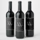 Modern Black Gray Monogram Name Script geometrisch Weinetikett