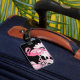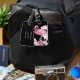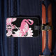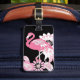 Die Produktgestaltung umfasst einen Flamingo mit kaleidoskopischen Paisley-Mustern in Rosatönen. Diese tropische Vogeldarstellung macht ein modernes und einzigartiges Gepäckanhänger.