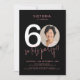 Modernes Schwarzes Rosa 60. Geburtstag Einladung. Das moderne, schlichte Design mit sanften rosa Touchs verleiht Ihrem Meilenstein Stil. Fügen Sie Ihr individuelles Foto hinzu, um ein personalisiertes Stück zu schaffen, das perfekt auf Ihre Feier abgestimmt ist. Das minimalistische Layout sorgt dafür, dass Ihr besonderer Augenblick die Bühne im Zentrum und gleichzeitig zeitlos anzieht. Dieses Design eignet sich ideal für Einladungen, Zwischenmahlzeiten oder Party-Dekorationen und verbindet Eleganz mit persönlicher Touch. Es eignet sich hervorragend, um die Meilensteine des Lebens mit Wärme und Charme zu feiern.