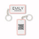 Design in Zazzle's Holiday Lookbook vorgestellt! Die elegante, minimalistisch-schwarze Typografie auf weißem Hintergrund mit einem dünnen rosa Rahmen verleiht diesem Business Schlüsselanhänger Template ein klassisches und dennoch modernes Ambiente. Ein großartiges Marketing-Tool, wenn Sie es gedreht, um Ihren QR-Code zu teilen. Passen Sie sich mit Infos an. Matching-Marketing-Materialien verfügbar in der Sammlung von Tools für kleine Unternehmen © MARISU PAPER CO