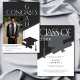 Celebrate your achievement with this modern black and white geometric Congrats Grad photo graduation announcement design. The front features a bold photo layout, while the back includes a stylish cap and diploma silhouette. Perfect for high school or college seniors wanting a minimalist, professional look. Use a color or black and white photo. Created by Simply Farmhouse Press.