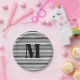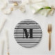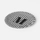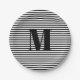 Modern black white stripes custom monogram initial pappteller