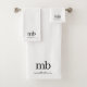 Modern Black White Trendy Script Initial Monogram Badhandtuch Set