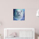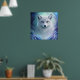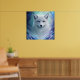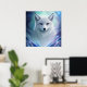 Modern Blue And White Silver Fox Graphic Wall Poster. Modern Home Decor.