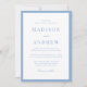 Create a fresh and airy first impression with this light blue photo wedding invitation. The front features a timeless combination of serif lettering and graceful script, framed by a light blue border that adds a calm, polished feel. On the back, your vertical engagement photo is showcased inside a coordinating border, tying the suite together with a soft, romantic finish that works beautifully for coastal, spring, and summer weddings.