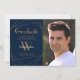 Modern Blue Foto Monogram Geometric Abschluss Ankündigung