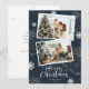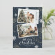 Modernes blaues Foto Frohe Weihnachtskarte mit Schneeflocken und Geschenken auf blauem Hintergrund. Personalisieren Sie diese Urlaubskarte einfach mit Ihren Fotos und Texten.