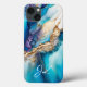 Modern Blue Gold Marmor Monogram Personalisiert Case-Mate iPhone Hülle